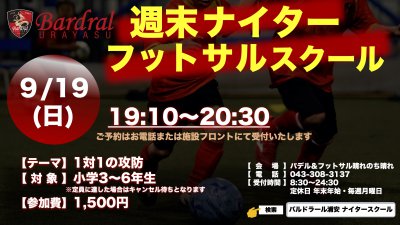 9月19日(日)に「ナイターフットサルスクール」を開催します!