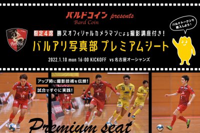 ホーム > ニュース > 【先着4席限定販売】1/10名古屋戦にて勝又オフィシャルカメラマンによる撮影講座付き!バルアリ写真部プレミアムシートを販売いたします!