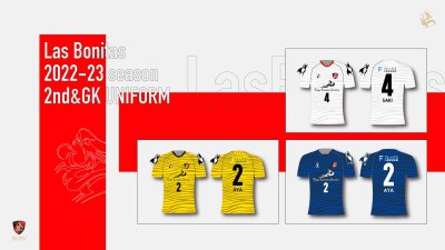 2022年4月28日(木)12:00より、2022-2023シーズン プリメーロ&ラス・ボニータスユニフォーム 2ndモデル&GK1st、2ndモデルの完全受注販売を開始いたしますことをお知らせいたします。