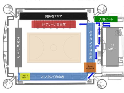 2Fスタンド席に各チームの応援エリア自由席を設置いたします。こちらの座席でのみ、太鼓、応援ハリセン等、自席で叩ける鳴り物の使用が可能となります。対象の座席エリアは下記をご確認ください。