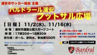 【バルドラール浦安フットサル広場】11月開催日程のお知らせ
