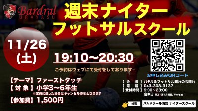 11月26日(土)に「ナイターフットサルスクール」を開催します!