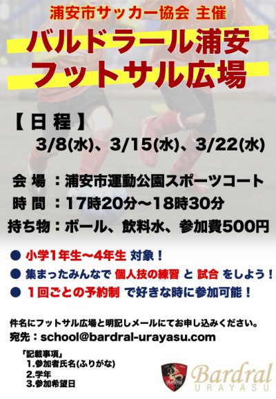 【バルドラール浦安フットサル広場】3月開催日程のお知らせ