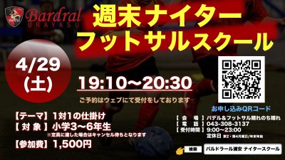 4月29日(土)に「ナイターフットサルスクール」を開催します!