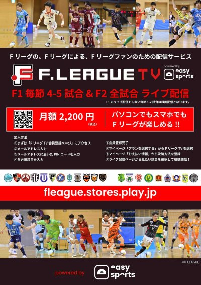 この度、Fリーグ2023-2024シーズンディビジョン1、ディビジョン2の試合が『FリーグTV』にてライブ配信されることが決定しましたのでお知らせいたします。ぜひ会員登録いただき今シーズンも会場、そしてFリーグTVでフットサルをお楽しみください‼️