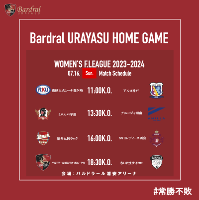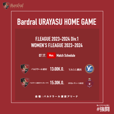 ■ 7月17日(月・祝)Fリーグ2023-2024、日本女子フットサルリーグ2023-2024、浦安同日開催試合チケット販売サイト