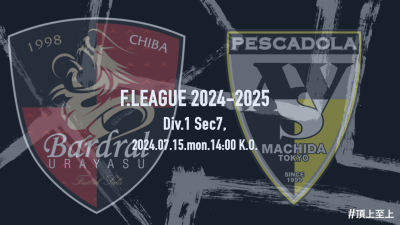 7月15日(月・祝)にFリーグ2024-2025 ディビジョン1 第7節、ペスカドーラ町田戦がバルドラール浦安アリーナにて開催されます。試合当日のタイムスケジュールは以下の通りとなります。