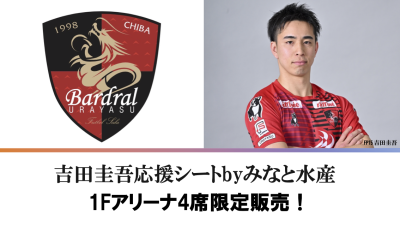 吉田圭吾選手のご実家が営むみなと水産のお土産付きシートです。中断前ラストとなる町田戦は4席限定での販売です!
