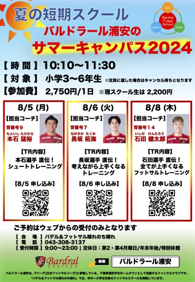 ホーム > ニュース > 【スクール】夏の短期スクール「バルドラール浦安のサマーキャンパス2024@晴れのち晴れ浜野」開催のお知らせ
