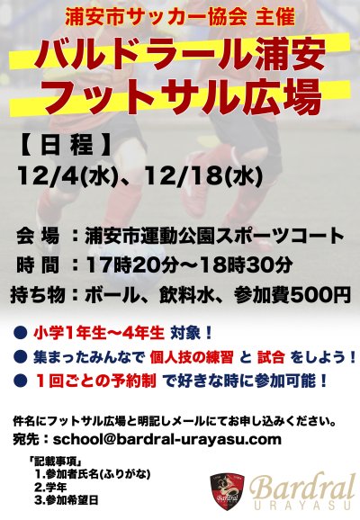 バルドラール浦安フットサル広場は、1回ごとの事前申し込み制で気軽に参加出来るワンコインスクールです。