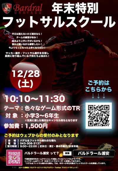12月28日(土)に「年末特別フットサルスクール」を開催します!
