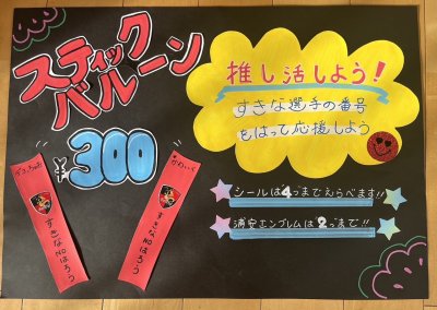 推し活グッズではスティックバルーン、メガホンを作れます!好きな選手の番号でグッズを作って応援しよう!