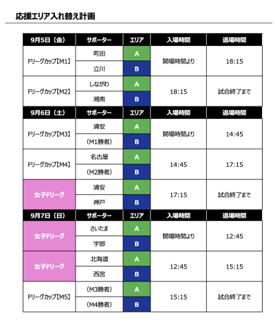 【応援エリア入替スケジュールおよび横断幕掲出について】