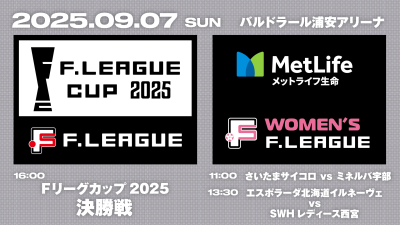 ■9月7日(日)Fリーグカップ2025 決勝、メットライフ生命女子Fリーグ2025-26