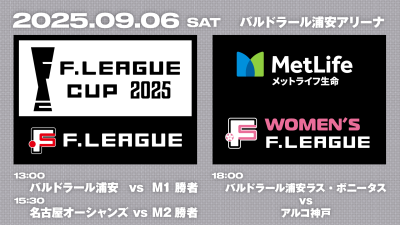 2025年9月5日(金)から9月7日(日)にFリーグカップ2025およびメットライフ生命女子Fリーグ2025-26 第8節がバルドラール浦安アリーナにて開催されます。