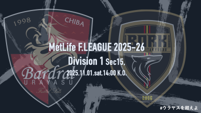 2025年11月1日(土)にメットライフ生命Fリーグ2025-26 ディビジョン1 第15節、ボルクバレット北九州戦がバルドラール浦安アリーナにて開催されます。