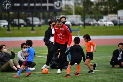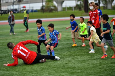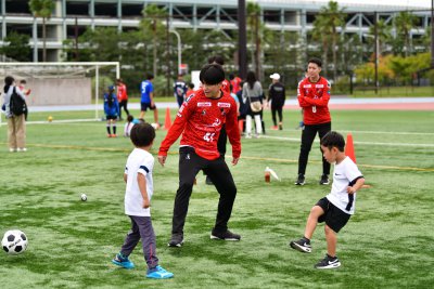 ●プリメーロは午後の部の「フットサル・サッカー体験」に参加ブリオベッカ浦安の皆さん、浦安市サッカー協会の皆さんと、陸上競技場にて「フットサル・サッカー体験」に参加いたしました。 当日はプリメーロ全選手で参加し、PK体験、ドリブル体験、シュート体験、ミニゲームなどのプログラムに参加し、浦安の子どもたちを中心に交流を図りました。