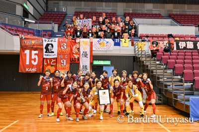 「本日も浜松までたくさんの応援ありがとうございました。今シーズンも全日本女子フットサル選手権を優勝で終えることができたのは、支えてくださったすべての方々のおかげです。選手権はこのメンバーでできる最後の大会ということで、個人的にもどうしても優勝で終わりたいなと思って臨みました。シーズンを通して、そこに全員で向かってこれた結果だと思います。私も今シーズン、たくさん仲間からパワーをもらったシーズンになりました。伝統のあるチームとして、良い結果を出し続けられるように感謝の気持ちを忘れずに引き続き、頑張りたいと思います。1年間たくさんの応援、本当にありがとうございました」