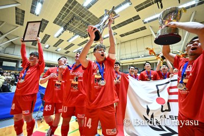 僕はペスカドーラ町田からフットサル選手としてのキャリアが始まり、しながわシティ、立川アスレティックFCと渡り歩きこのバルドラール浦安に加入しました。どのクラブにも歴史がありますが、浦安のファンサポーターの皆さんの存在は他のクラブとは一味違います。それこそ今季はアウェイゲームでもホームチームより多いんじゃないかというぐらい多くの方が現地に応援に来てくださって、タイトルを獲るという目標に向けての想いがどのクラブよりもすごいと浦安に来て改めて感じました。北九州ラウンドも岸和田ラウンドもそうですが、この小牧ラウンドは特に多くの方が来てくれて、圧倒的ホームの雰囲気を作ってくださってありがとうございました!選手、スタッフももちろん頑張りましたが、僕らがここまで頑張れるのはファンサポーターの皆さんの応援があってこそです。浦安に関わるすべての方々、浦安一丸で獲った優勝に感謝しかないです。まだ加入1年目ですが、このクラブで優勝を目指し続けてきたことに誇りを持っています。本当にありがとうございました」